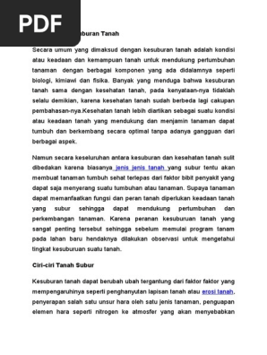 Kesuburan tanah merupakan kemampuan tanah untuk menyediakan unsur hara dalam jumlah cukup dalam bentuk yang tersedia. Hak tingkat hidup yang memadai untuk kesehatan dan. Tanah sebagai media tumbuh bagi tanaman menjadi penentu seberapa hasil panen yang akan didap. Jurnal kesehatan global merupakan jurnal yang dikelola dan diterbitkan oleh pascasarjana jurnal kesehatan global diterbitkan 3 (tiga) kali setahun, seperti pada bulan januari, mei dan september. Struktur tanah sangat berpengaruh dalam bidang pertanian.